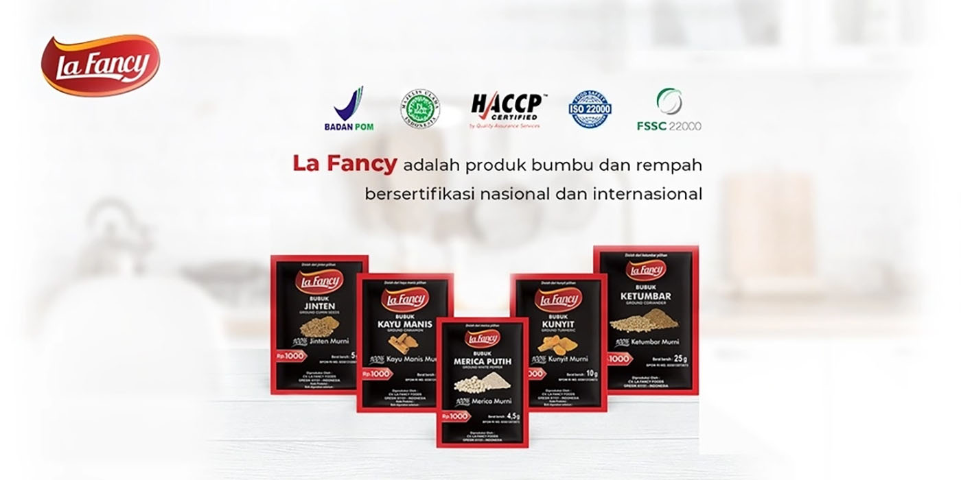 La Fancy merupakan produsen rempah terbaik di Indonesia dengan kualitas ekspornya. Produk-produknya 100% murni, terjangkau untuk dapur keluarga hingga restoran mewah, dan telah bersertifikat Halal. Bumbu rempah La Fancy merupakan produk non-GMO, sehingga menjamin keamanan bagi kesehatan.
